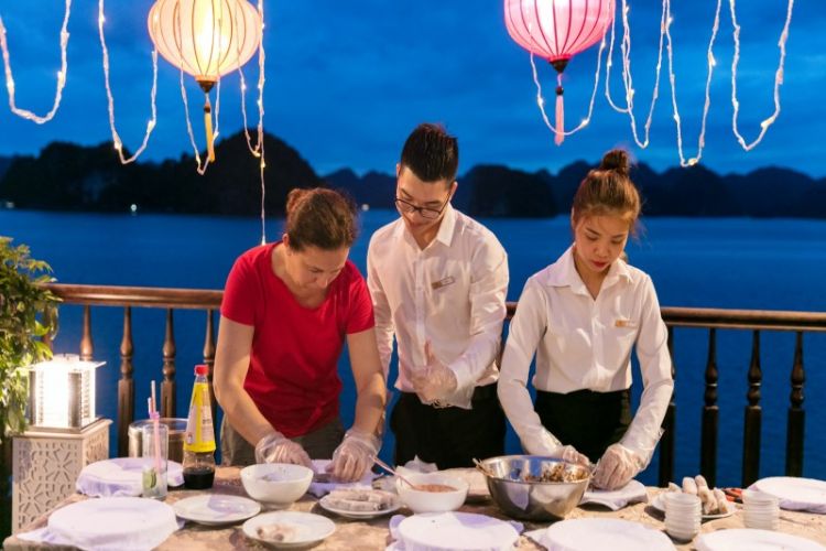 17:30 Back to the yacht and free to rest (watch the sunset fall over Halong Bay - this is an ideal time for travelers who have a hobby of taking pictures)